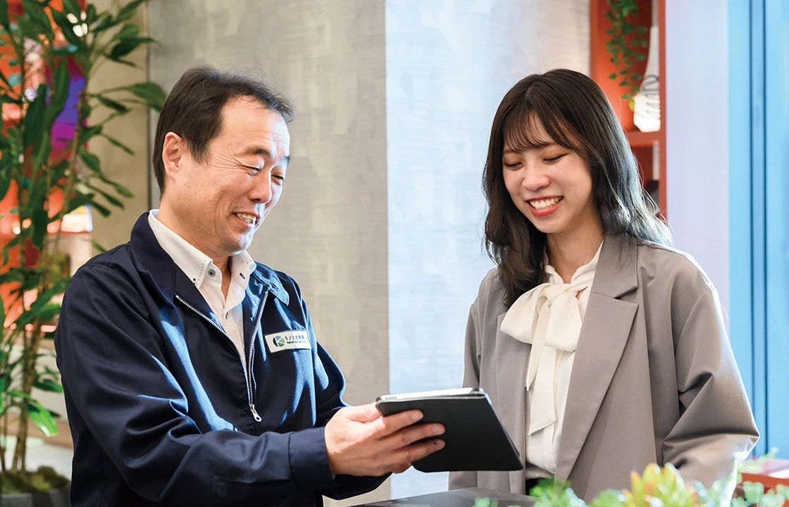 様々な社員の協力なしに成約は成し遂げられません。メンバー全員で達成感を味わうことが、キノシタ林業で働く醍醐味です。そのためチームの成果はメンバー全員で分配。強固なチームワークで仕事に取り組み、一人ひとりが会社への貢献を実感できる体制を整えています。